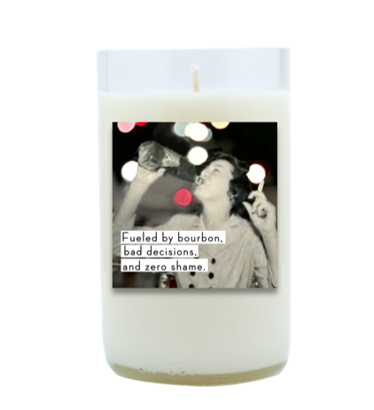 Lifelong friendships are made from a combination of inappropriate behavior combined with sarcasm.  This design reads, “Fueled by bourbon, bad decisions and zero shame.” Customize the beverage of choice (i.e. vodka, wine, martinis, etc.) A fun conversation starter for the home or gift for her. Personalize with your choice of our signature fragrances.